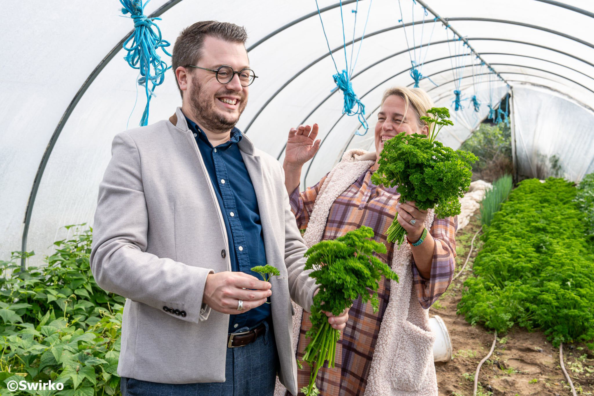 Als Aalstenaar en binnenkort zelfs als inwoner van Meldert, kent gedeputeerde David Coppens het bedrijf goed. “Het toont mooi aan dat Aalst méér is dan een stedelijk centrum maar wel degelijk ook een te koesteren landbouwgemeenschap telt”, zegt Coppens. “Hoe Luc en Sonja het hier aanpakken, vind ik prachtig.”